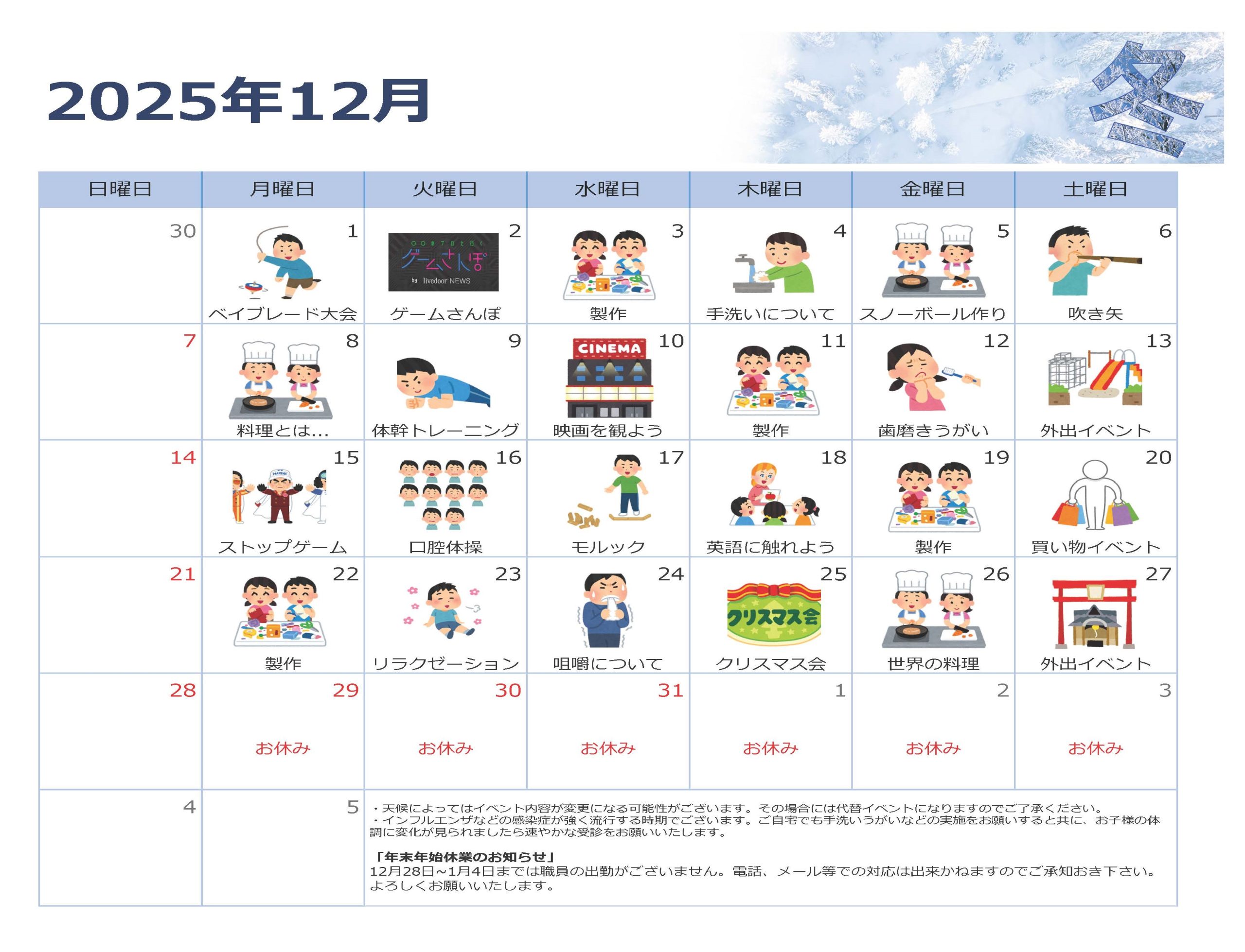 2025年12月の療育プログラム/放課後等デイサービス「マルシュ町田センター」