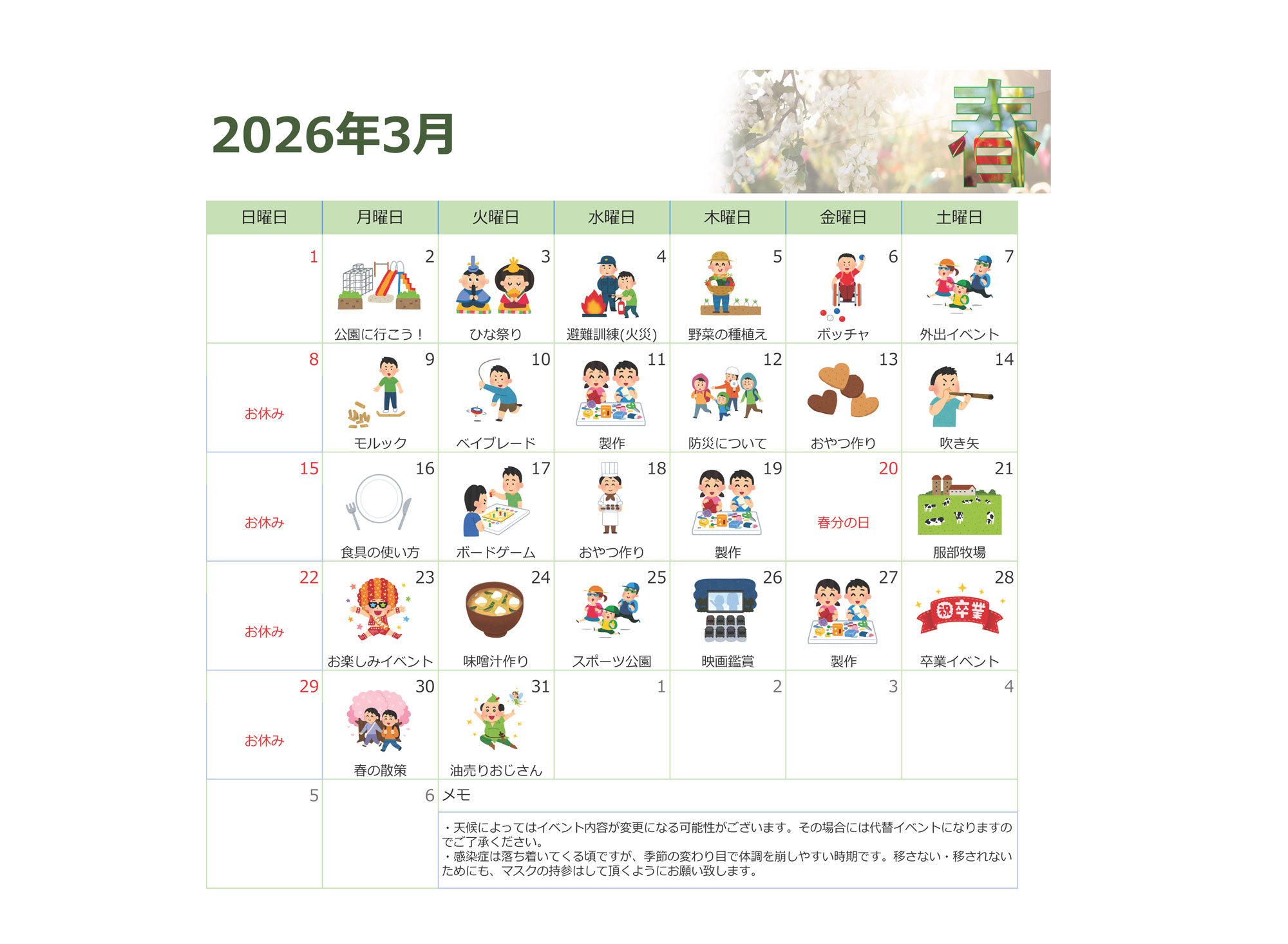 2026年3月の療育プログラム/放課後等デイサービス「マルシュ町田センター」